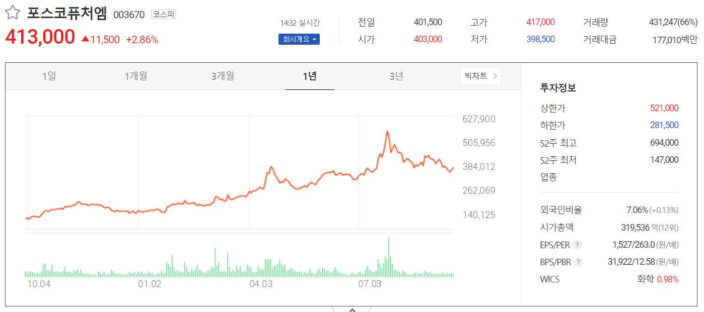 포스코퓨처엠 - 코스피 003670 (포스코 그룹 관련주)