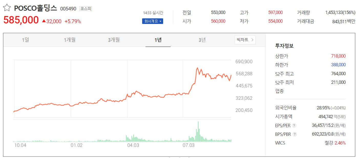 POSCO홀딩스가 포스코 관련주 급등차트를 보이는 이유
