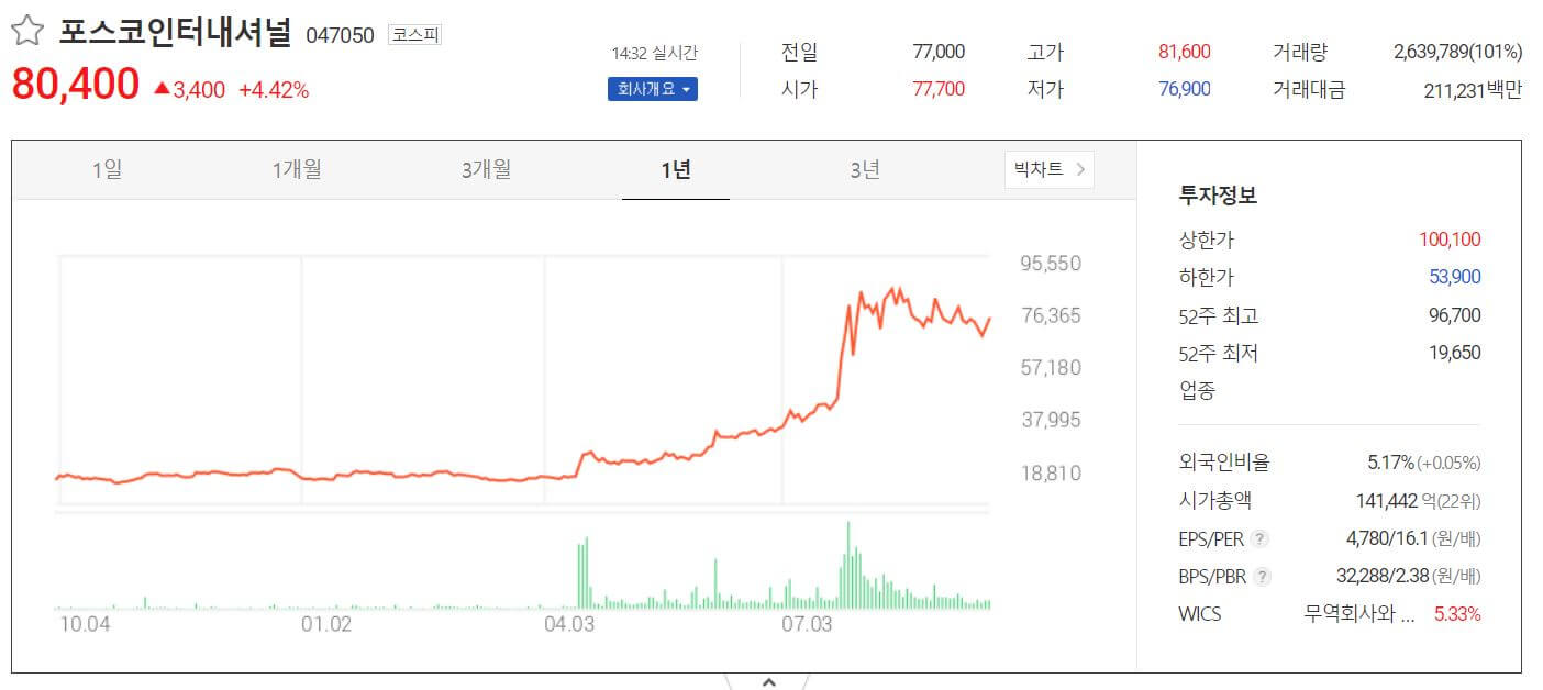 포스코인터내셔널 - 코스피 047050 (포스코 그룹 관련주)
