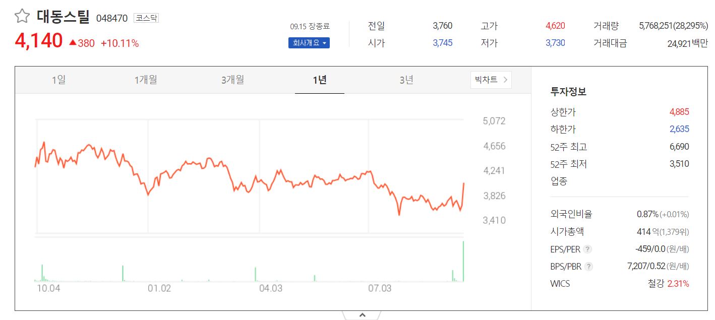 대동스틸이 철강 관련 수혜주로 급등차트를 보이는 이유