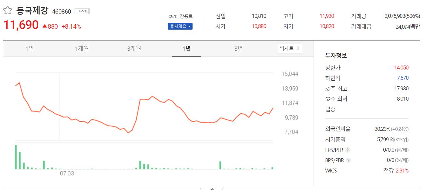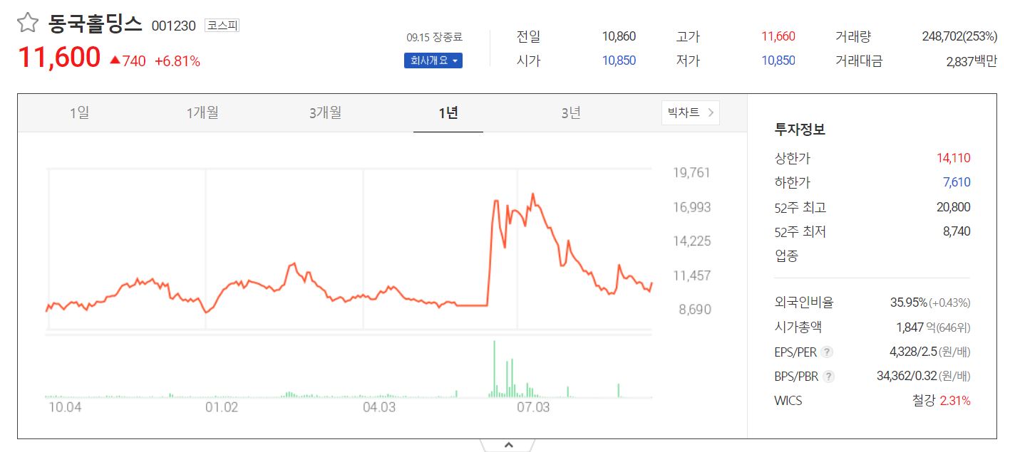 동국홀딩스 - 코스피 001230 (철강 관련주)