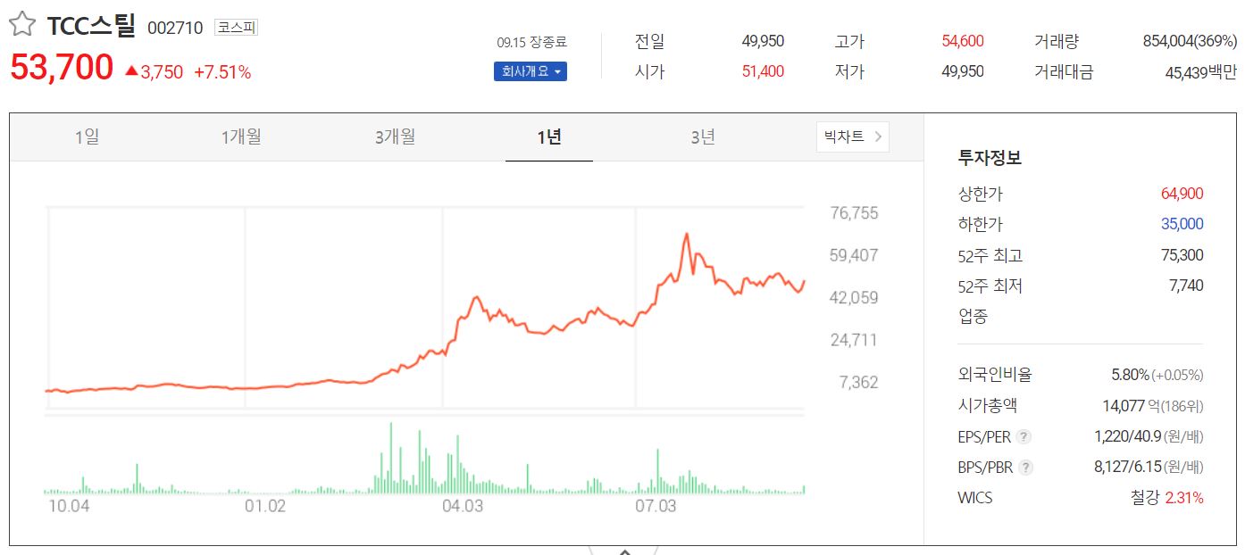TCC스틸 - 코스피 002710 (철강 수혜주)